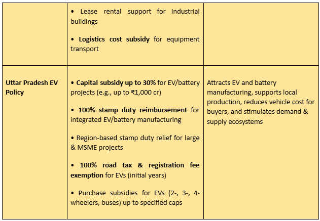 Businesses under the industrial policy, electronics policy, and EV policy in Uttar Pradesh may benefit from the following: